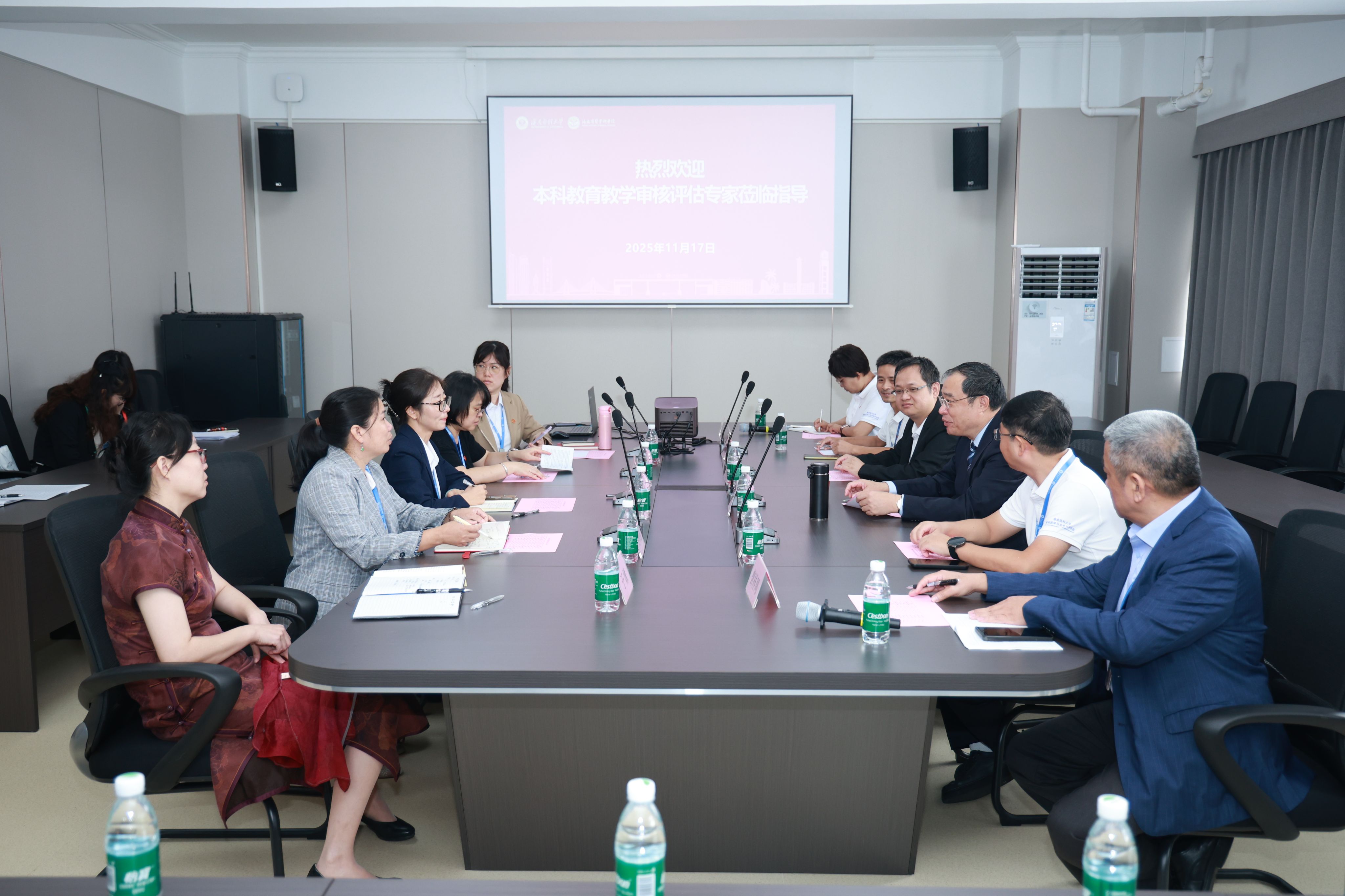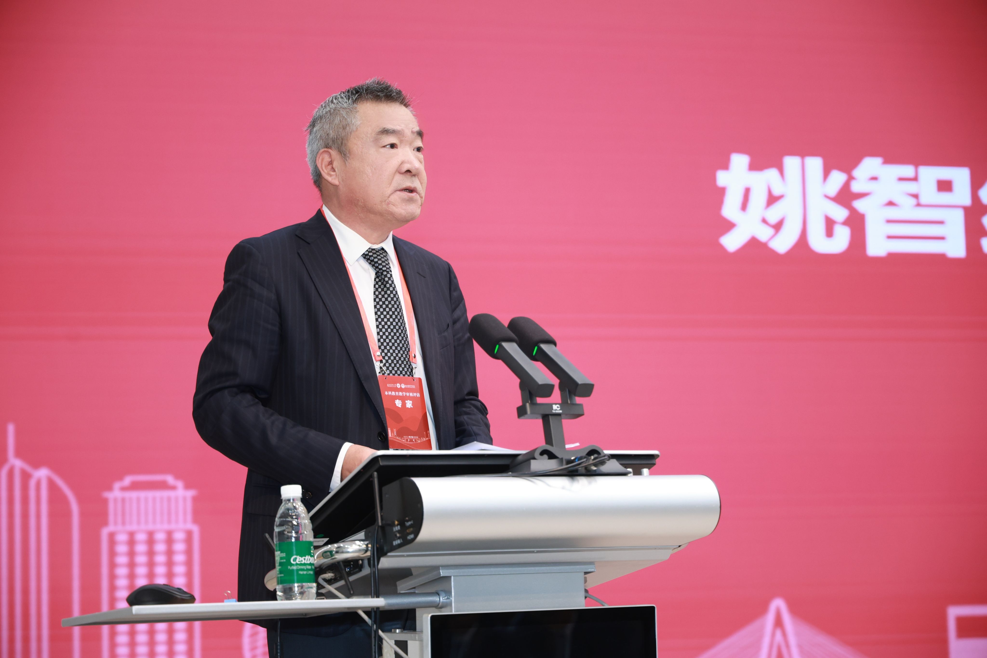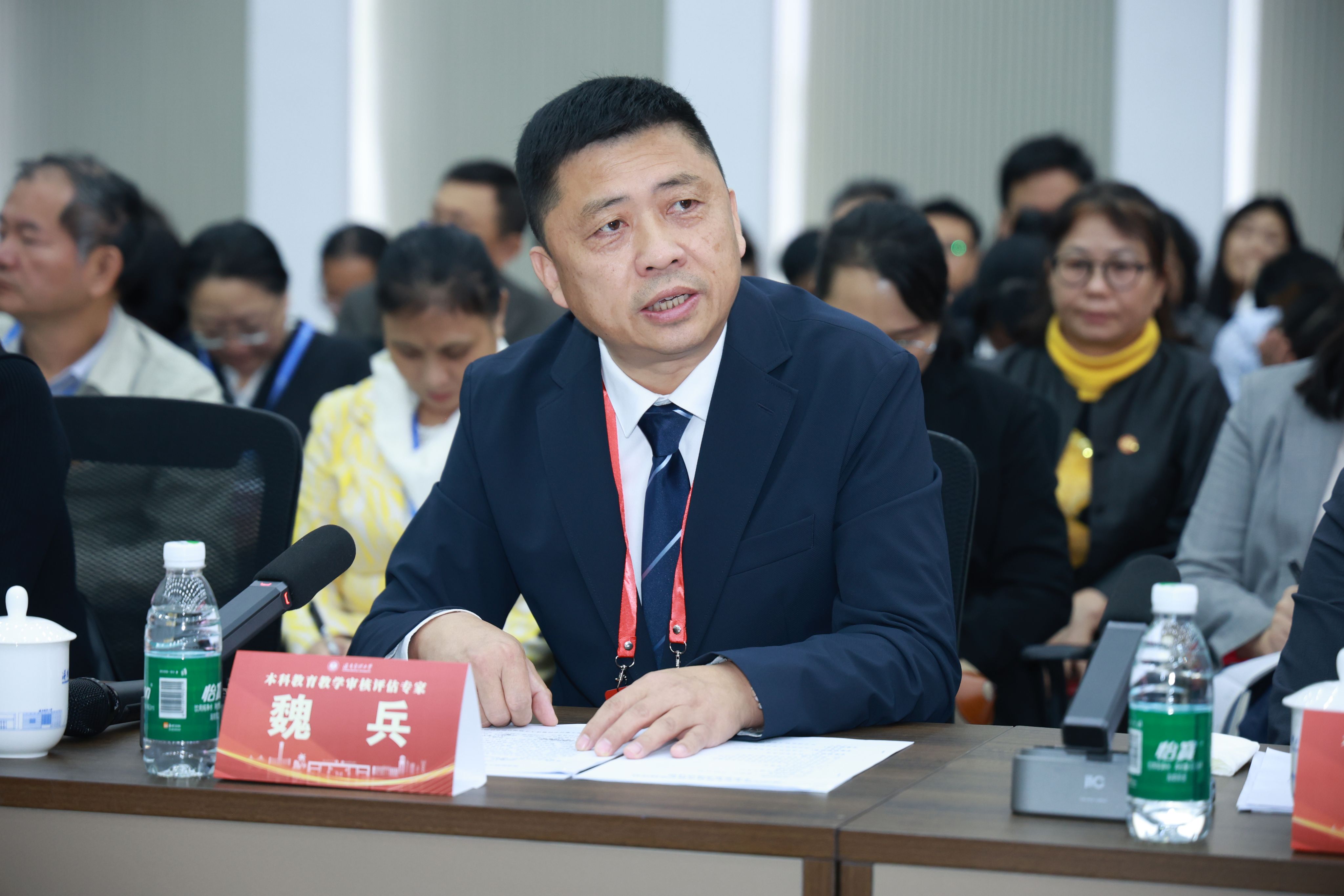 陈国强校长代表正在北京学习的张彩虹书记,代表学校对专家组的“把脉问诊”表示衷心感谢。他指出,在过去一个月的时间里,专家组成员从不同领域对学校本科教育教学工作进行了深入细致的审核评估,并细致入微地提供了专业指导和宝贵建议,值得全校领导干部和广大教师认真学习和深刻反思。他表示,本次审核评估不仅是对学校教育教学的全面检视,更是对海医过去两年改革成效与人才培养的系统性检验,专家组的肯定为全体海医人注入持续深化改革的信心与动力。他表示,学校将认真梳理专家组提出的意见建议,坚持以问题为导向,建立问题清单、整改清单和责任清单,真抓实干推动整改措施落到实处。他强调,本科教育教学是大学的根本使命,希望全校师生能够步步为营,久久为功,把此次评估作为新的起点,与海南自贸港建设同频共振,继续保持昂扬斗志,把专家评估意见充分融入“十五五”规划编制之中,并采取切实举措加以高质量落实。最后,他衷心感谢海南省委、省政府和省教育厅对海医高质量发展的大力支持,感谢全体海医师生为学校改革发展所付出的辛劳与汗水,并期待专家组成员继续关注海医,支持海医。