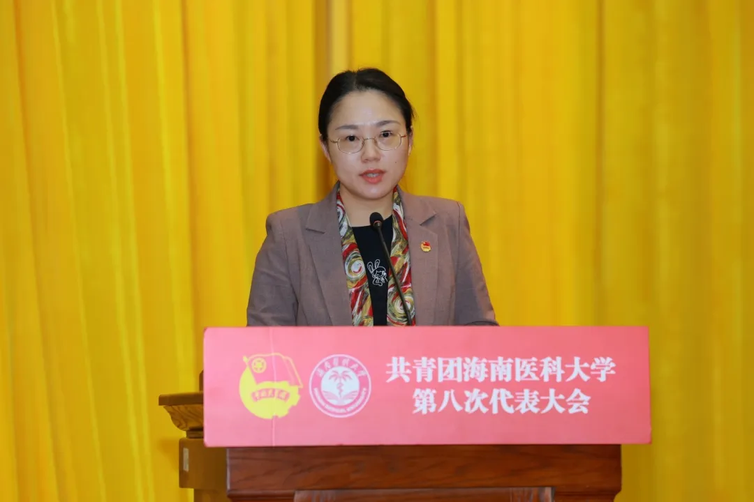 吴弦代表团省委向大会召开表示祝贺。她肯定了海南医科大学团委在学校党委的正确领导下,围绕培养社会主义建设者和接班人,所取得的工作成效。结合新时代使命,吴弦对学校共青团和广大青年提出四点希望:一是强化政治引领,把稳青春航向;二是深化组织建设,激发基层活力;三是提升服务效能,助力青年成长;四是弘扬青春担当,贡献自贸港建设。她勉励海医青年将个人发展融入时代洪流,在服务国家战略中绽放光彩。