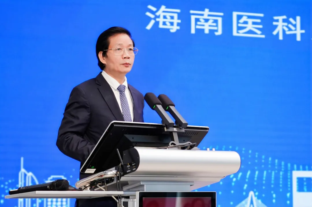 省人民政府教育总督学李渝凤在致辞中阐述了在海南全岛封关运作、自贸港建设全面推进的新阶段,推动医学教育与医疗服务深度融合具有特殊且重要的意义。她希望海医及其附属医院聚焦体制机制创新,健全统一的校院领导与管理体制、持续优化人才评价激励体系、牵头搭建开放共享的省级教学科研平台,为全省提供可复制的发展范式;聚焦人才培养根本任务,强化临床教学,优化人才培养结构,并充分发挥政策优势拓展国际合作,培育具有国际视野和热带医学特色的医学人才;聚焦特色发展,做强特色优势学科、深化产学研用融合、强化医防融合创新,打造自贸港医学创新策源高地。