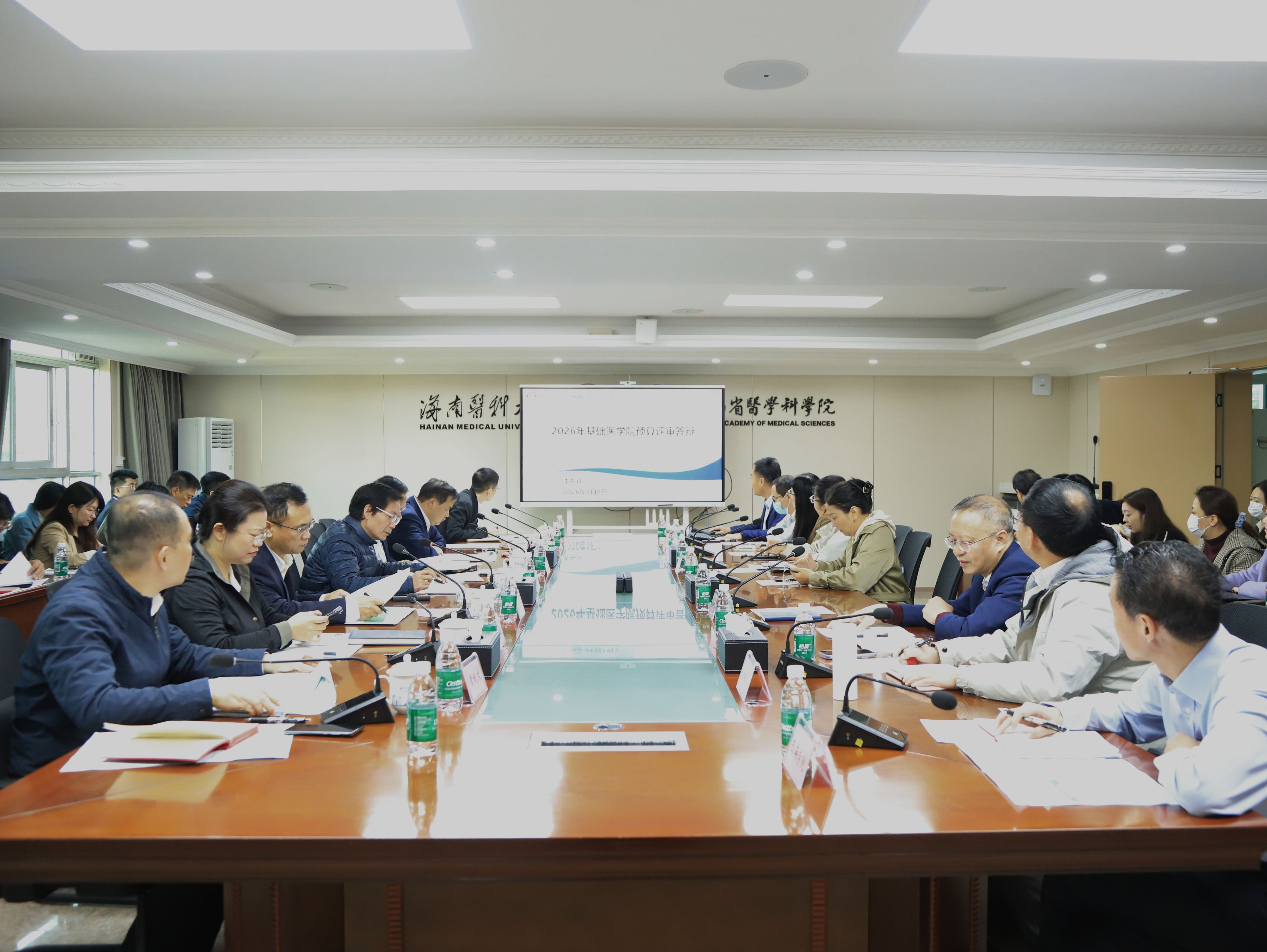 1月8日,学校财经工作委员会2026年第一次会议暨预算评审会在文墀楼第一会议室召开。校长陈国强主持会议,校领导班子成员以及各管理服务部门、二级学院负责人参加会议