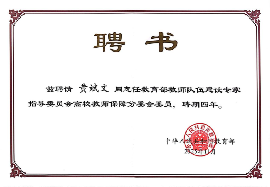 会议审议了《高校教师保障分委会工作章程(草案)》和《高校教师保障分委会2026年度工作要点(讨论稿)》,并举行分委会委员聘任仪式。我校党委常委、副校长兼智能医学与技术学院(大数据研究中心)院长黄斌文教授受聘为分委会委员。