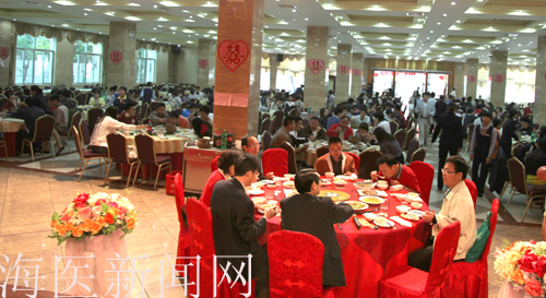 2月13日,农历大年三十,海南医学院2010年春节师生团拜会在海口市富源园酒店举行。校长焦解歌,副校长陈玉民、陈志斌,学生工作部部长史济纯,保卫部(武装部)部长谭美权,机关党总支书记、校长办公室副主任王身坚,校长办公室副主任李春报等职能部门负责人,各院系部负责人、辅导员以及200多名留校学生参加了团拜会。会议由陈玉民副校长主持,焦解歌校长发表了讲话。
