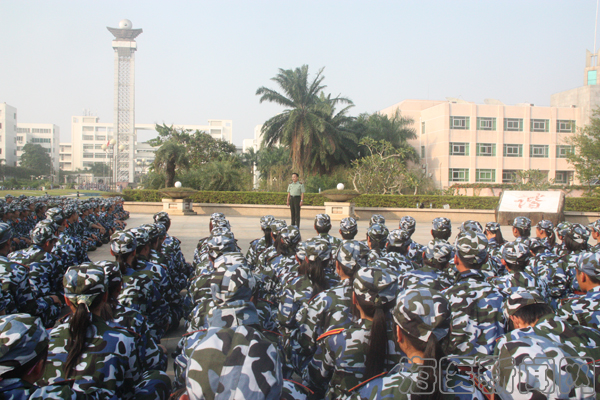 学校武装部部长、海南医学院2009年新生军训大队队长谭美权,省边防武警总队军事训练处处长、海医2009年军训大队副队长刘旺,临床学院与护理学系的领导等对新生们进行了检阅。