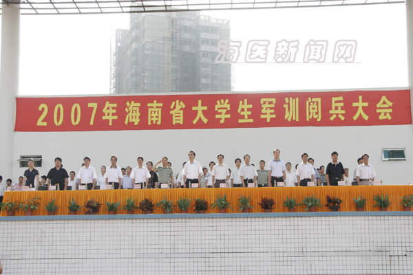 9月28日上午,海南省2007年大学生军训阅兵汇操在海口经济职业技术学院隆重举行,我院和海南大学、海南师范大学等16所高校的代表队参加了阅兵,其中我院与海南大学、海南师范大学等6所高校参加了表演方阵。参加军训阅兵的领导有:省政府副秘书长屈建民同志、教育厅党组书记胡光辉同志、省军区副参谋长陈海深同志、省教育工委副书记麦浪同志等省政府和军区部门领导,我院副院长陈玉民带队参加。我院组织了男生方队、女生方队和军体拳表演方队分别参加了分列式阅兵和技能表演,获得好评。