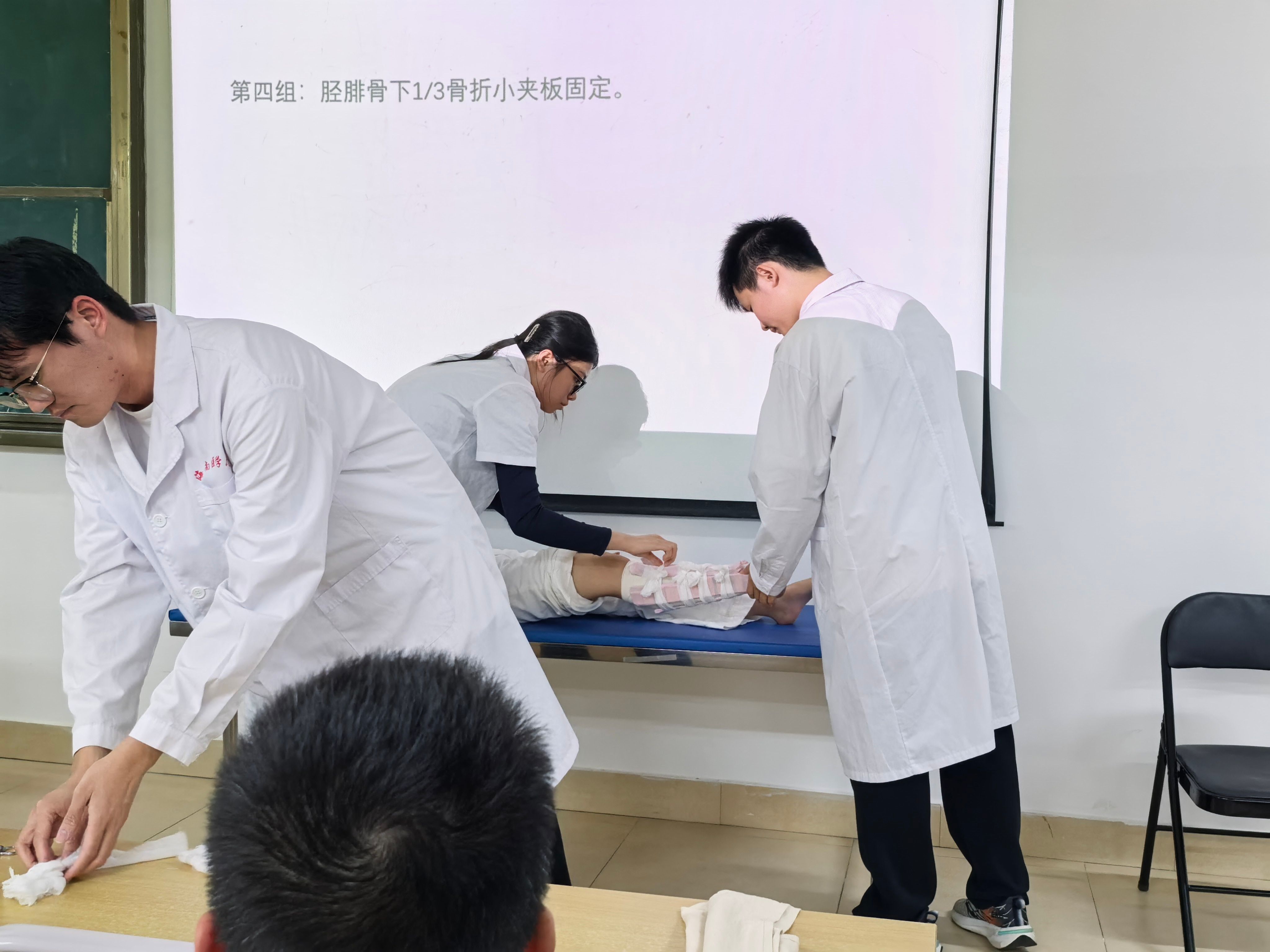 在海南自贸港建设蓬勃推进、医疗卫生事业开放创新不断深化的背景下,12月18日晚,我校2025年中医骨伤临床技能大赛决赛在4-106教室举办。