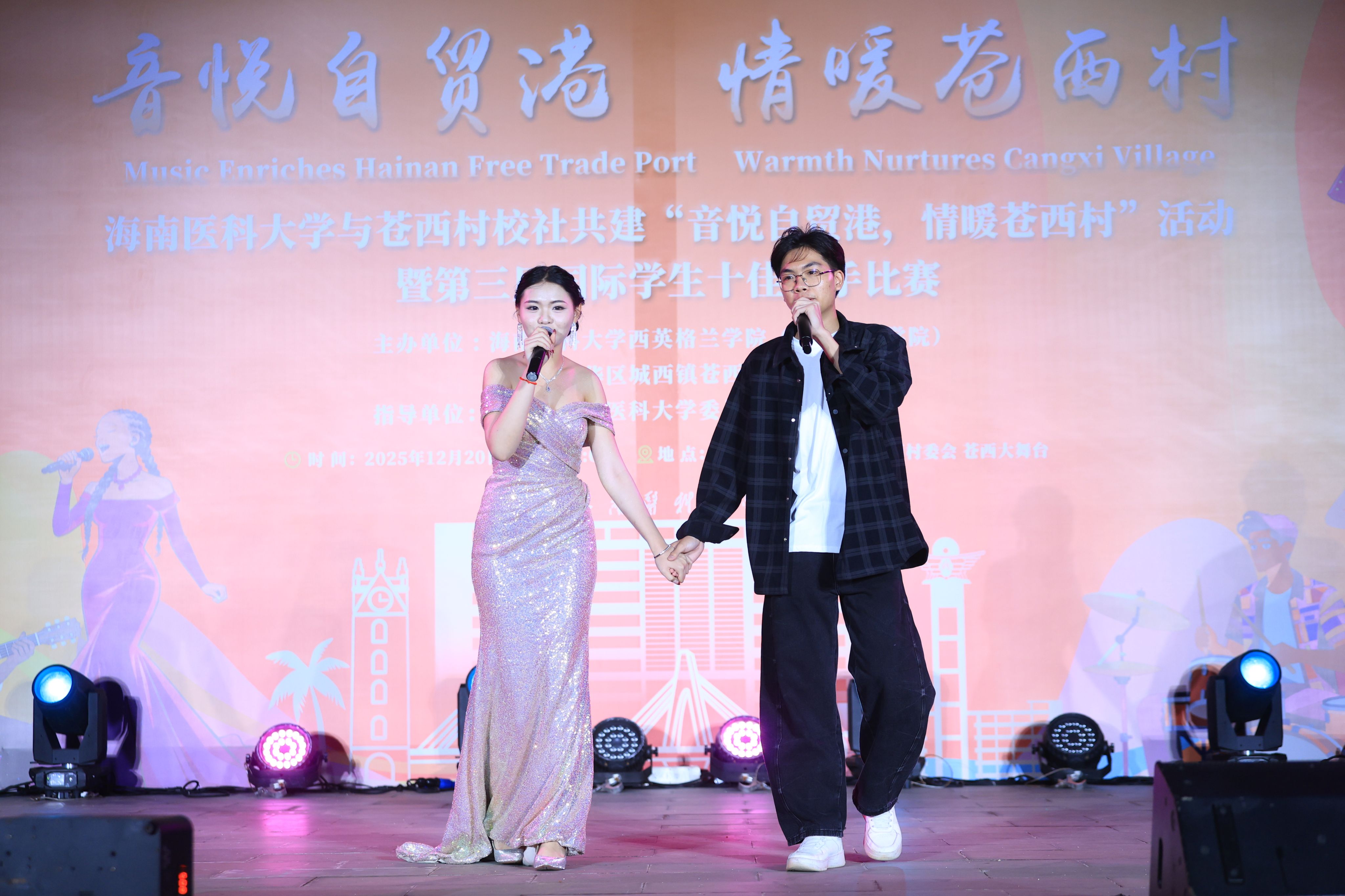 12月20日,由我校西英格兰学院(国际教育学院)(以下简称“西英国教学院”)与海口市龙华区城西镇苍西村村委会联合主办的“音悦自贸港,情暖苍西村”校社共建活动暨第三届国际学生十佳歌手比赛,在苍西村委会社区活动场地圆满落幕。