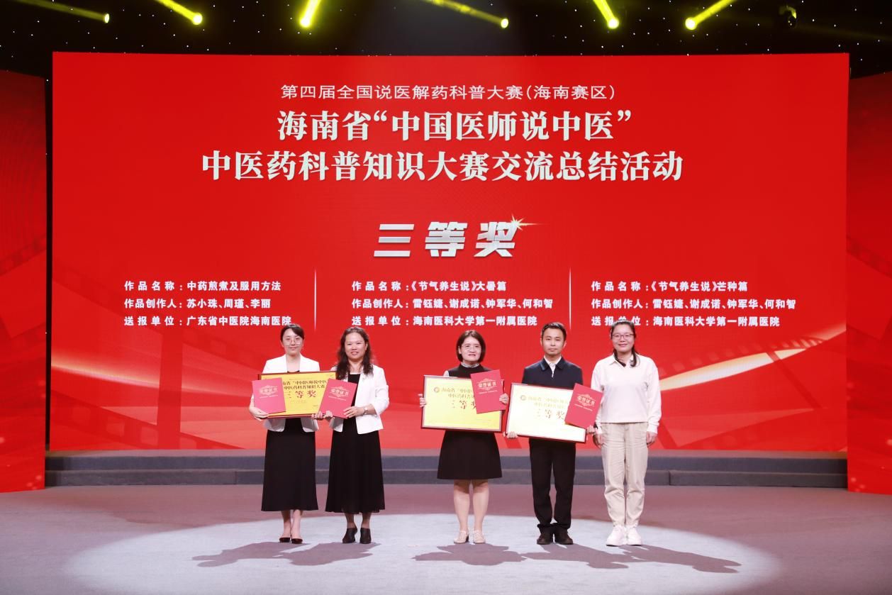 12月18日,第四届全国说医解药科普大赛(海南赛区)暨海南省 “中国医师说中医”中医药科普知识大赛交流总结活动在海口举行。海南医科大学第一附属医院选送的科普作品表现亮眼,一举斩获二等奖1个、三等奖2个,充分展现了医院在健康科普创作与中医药文化传播领域的扎实功底与创新活力。
