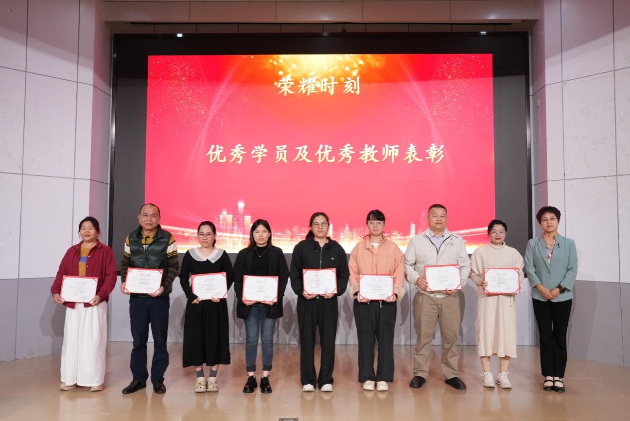 随后,各实践基地代表依次上台,为全体学员颁发结业证书。常彩红为8 名“优秀学员”颁发荣誉证书,表彰他们在培训期间的突出表现;王豪激向优秀教师代表致以诚挚敬意并送上表彰证书,感谢他们为基层医疗人才培育倾注的心血与汗水。