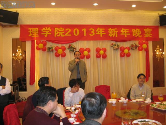 会后,理学院在龙泉海鲜酒楼举办2013新年团拜会,邀请到学校党委书记廖小平、党委委员/校长助理牟忠林、校长助理谢协驹、校长助理黎岳南、热检学院院长钱士匀、副院长吕刚以及理学院全体教职员工参加。廖书记在团拜会上充分肯定理学院一年来在各项工作所取得的成绩,感谢大家为我校2012年的申硕所做的贡献。