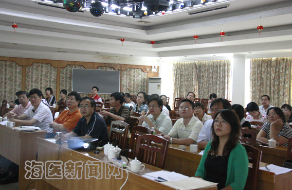 药学专业负责人刘明生教授汇报了海医国家特色专业——药学专业建设方案(讨论稿),他从建设目标、方案、进度安排、预期成果和学校支持五个方面阐述了今后药学专业建设的设想。