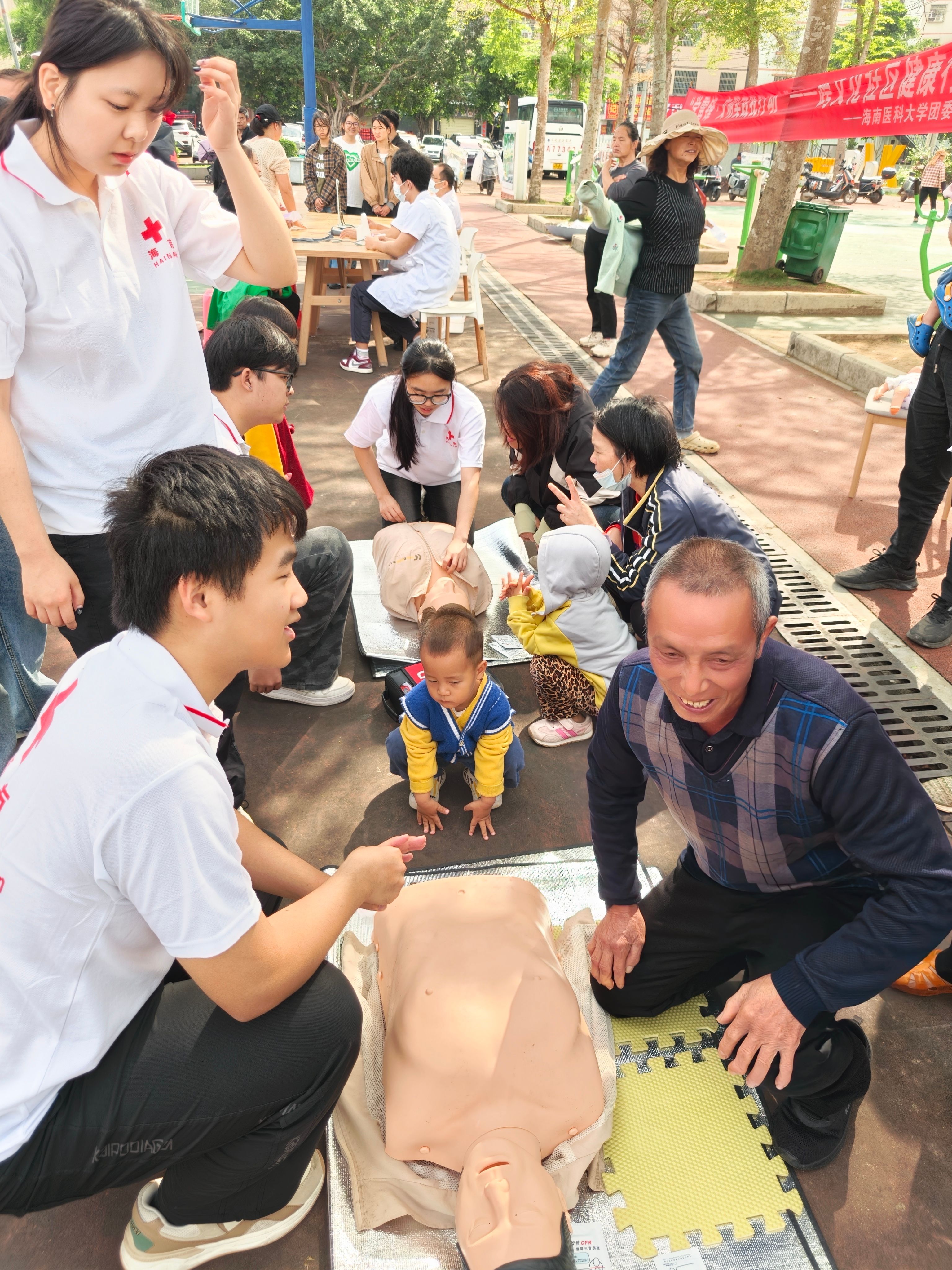 活动以“跨文化健康服务集市”为核心,设置四大主题板块,满足居民多样化需求。一是中医养生智慧角:中医专家与志愿者现场演示针灸推拿、穴位按摩;二是急救技能培训站:通过心肺复苏(CPR)模拟演练、伤口包扎教学,居民在“情景式”互动中掌握急救技能;三是国际健康文化展:图文展板与留学生讲解结合,展示印度瑜伽、日本膳食指南、中东饮食文化等健康习俗;四是慢性病管理咨询台:医学专家为居民提供高血压、糖尿病管理方案及个性化饮食建议。