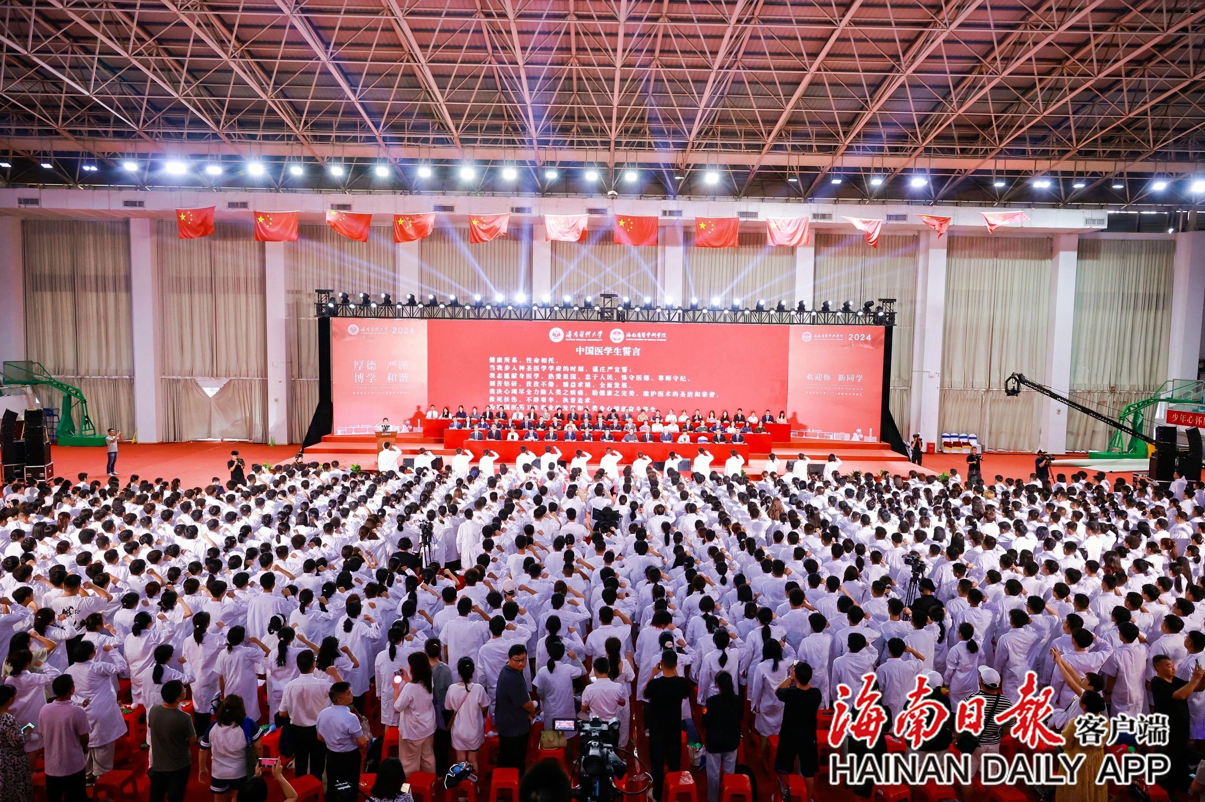 8月28日上午,海南医科大学2024级新生开学典礼在该校子文体育馆举行。