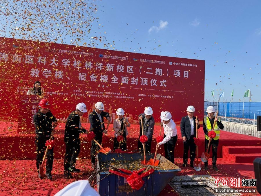 中新网海南新闻12月30日电(李景致 符马林) 12月29日下午,随着最后一方混凝土浇筑到位,海南医科大学桂林洋新校区(二期)项目11栋宿舍楼与3栋教学楼全部完成主体结构封顶。该重要节点的圆满完成,标志着这一海南省重点教育配套工程建设取得阶段性重大进展,为海南自贸港在封关运作背景下培育高素质医学人才、推动科研创新提供了坚实的硬件保障。