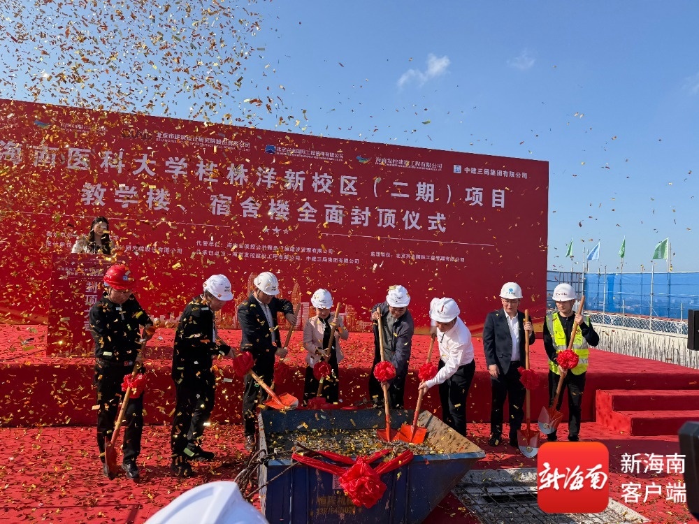 “此次封顶的楼群包含多功能教学楼与学生宿舍,未来可满足数千名师生的学习、科研与生活需求,为学校提升办学层次、强化热带医学特色奠定坚实基础。”海南医科大学新校区建设办公室主任刘向海表示。
