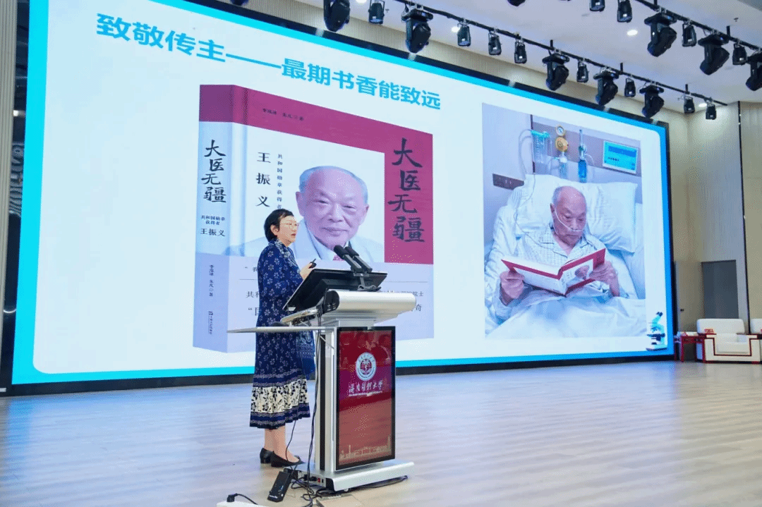 今日的筱海国际会议中心座无虚席,连通道上都站满了人。那份即便站立也要专注倾听的执着,正是精神传承最生动的注脚。会场内,一本本崭新的《大医无疆——共和国勋章获得者王振义》整齐摆放,封面上的院士面容慈祥而温暖。