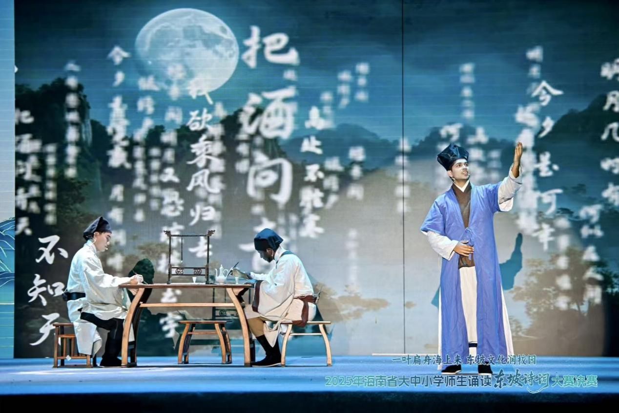 12月21日,2025年海南省大中小学师生诵读“东坡诗词”大赛决赛在华东师范大学澄迈实验中学圆满落幕。由我校马克思主义学院裴洲司、陈娇老师指导的留学生团队,凭借扎实的语言功底、创新的演绎形式与深刻的文化理解,荣获大学组一等奖,生动展现了我校党建引领文化育人的工作成效。