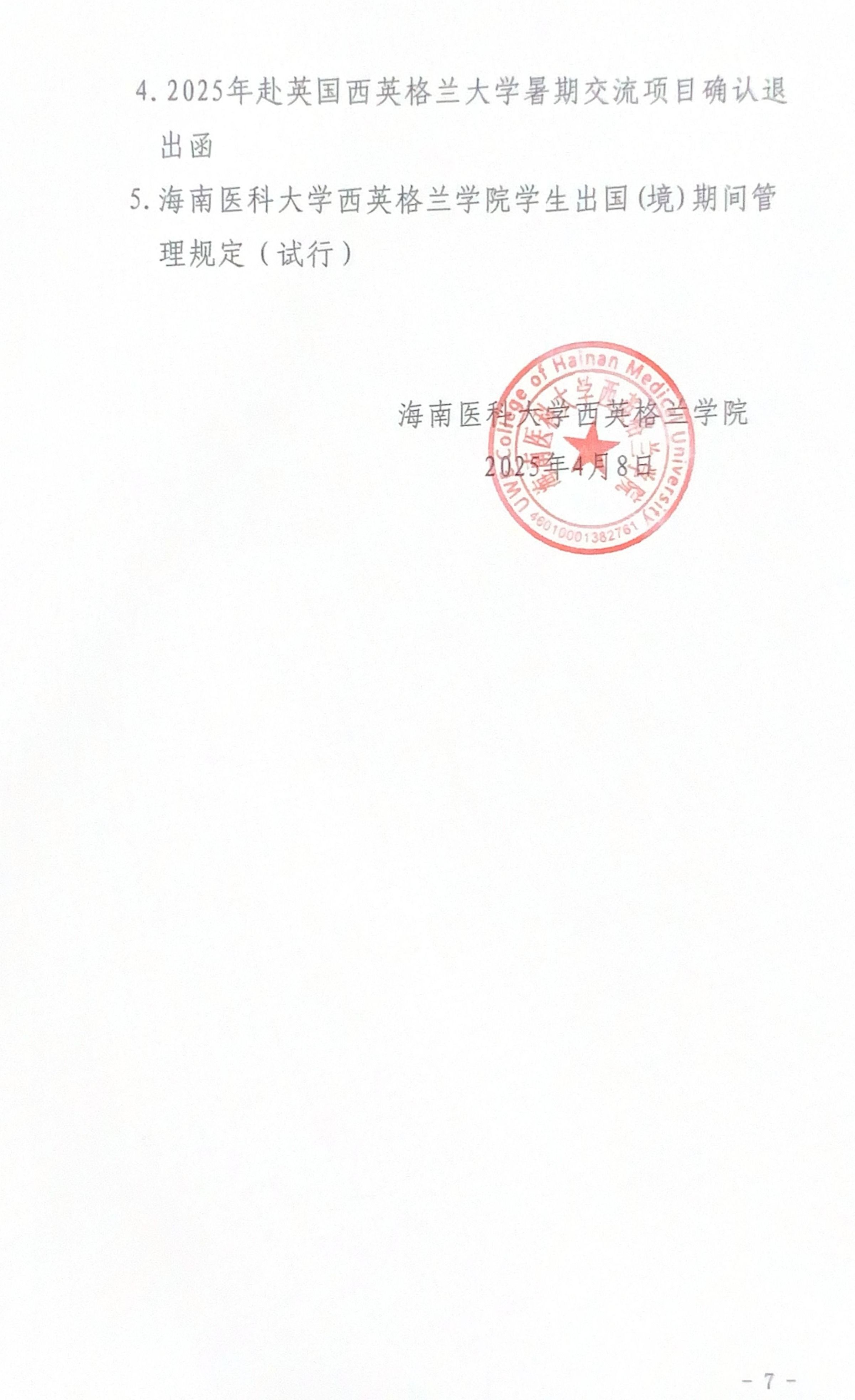海南医科大学西英格兰学院2025年关于遴选优秀生赴英国西英格兰大学暑期交流的通知