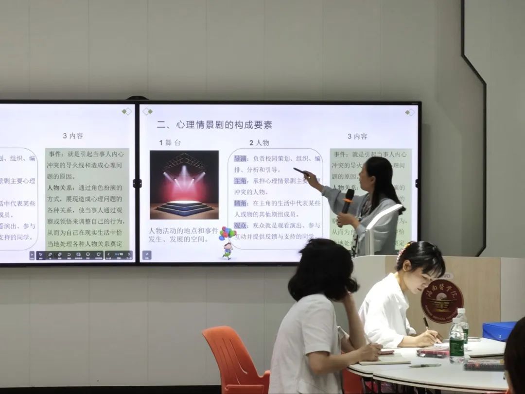 游戏结束后,李丹老师接着对心理健康教育实践课活动的开展提出了个人见解,对如何表现心理情景剧的内核展开了详细的案例讲解,得到了现场老师们的赞同,也收获了老师们宝贵的意见。
