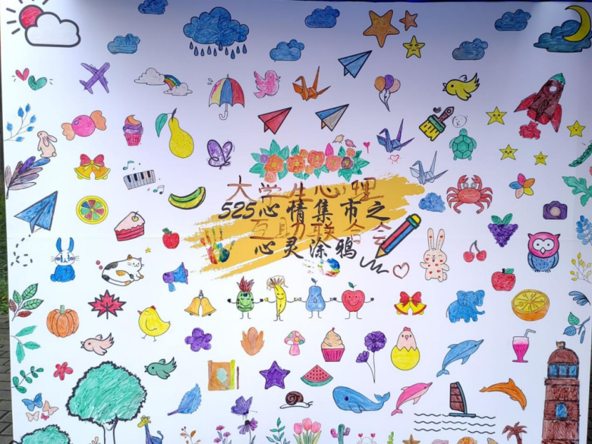 为了疏解同学们由于临近期末考试而产生的迷茫和焦虑的情绪,使同学们能够在学习和课余生活中更好地了解自己、认识自己、悦纳自己。大学生心理健康教育与咨询中心于2024年5月25日上午11:00-13:00和下午16:00-18:00分别在一食堂和三四期宿舍门口举办了“525心情集市”活动,活动包含“唤醒扇意”和“心灵涂鸦”两个环节。