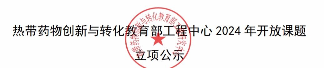 根据《教育部工程研究中心建设与运行管理办法》及学校相关规定,热带药物创新与转化教育部工程中心组织专家对开放课题申报材料进行了合规审核和会议评审,拟批准10项开放课题立项并予以资助,开放课题总金额34万元。