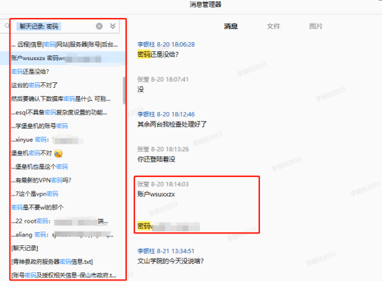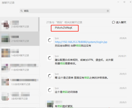 2)搜索:远程、密码、账号 关键字,针对包含敏感信息的内容,查看前后文内容: