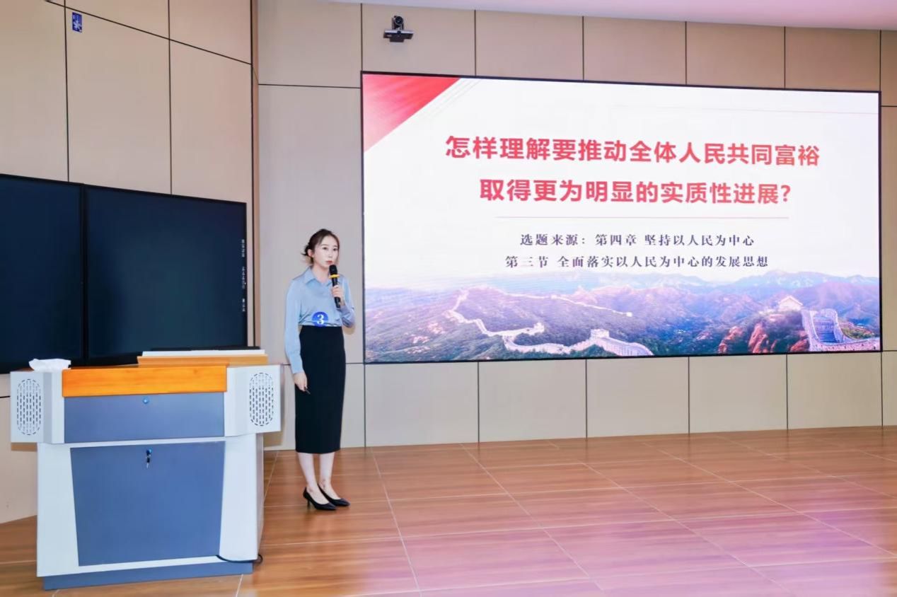 在比赛中,三位参赛教师遵循各门思政课程最新统编教材精神,运用案例教学、情景模拟、互动问答等多样化教学形式,依次进行了20分钟现场授课和5分钟答辩。