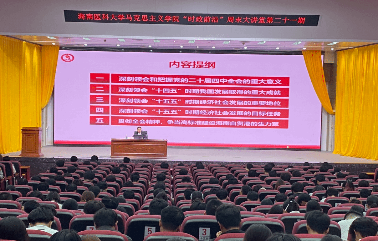 整场报告内容丰富、逻辑清晰、深入浅出,既精准阐释理论,又紧密联系实际,特别是结合海南自贸港建设封关运作在即的重大机遇,对师生深刻领会和把握党的二十届四中全会精神具有重要的指导作用。与会师生纷纷表示,将以此次学习为契机,进一步将思想和行动统一到全会精神上来,把学习成果转化为刻苦学习、积极工作的强大动力,为强国建设、民族复兴以及海南自贸港建设贡献智慧和力量。