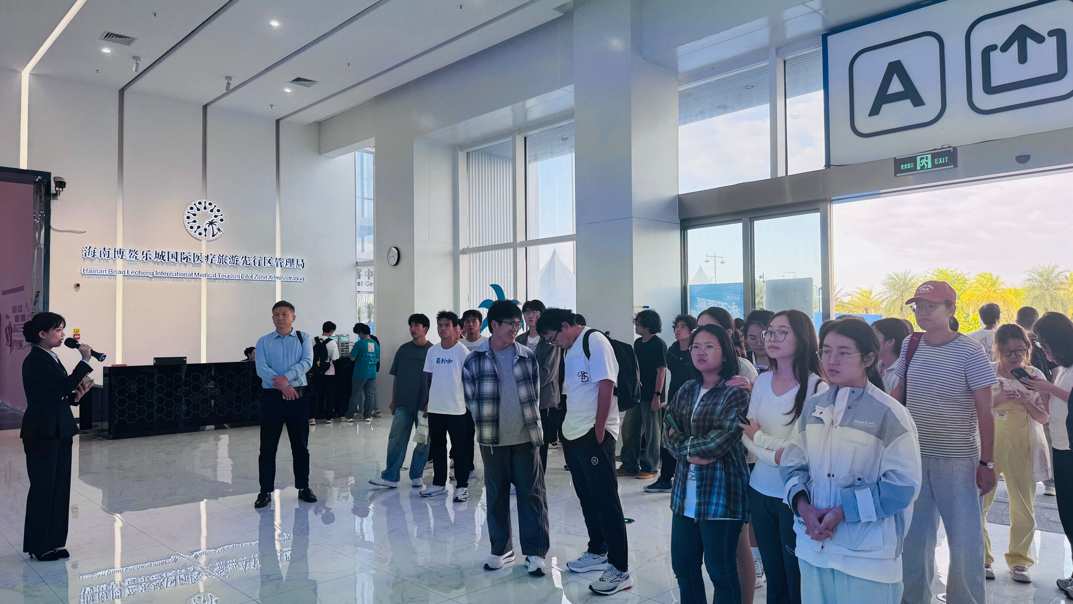下午,实践教学转场至博鳌乐城国际医疗旅游先行区。在这里,师生们实地探访了被誉为“医疗特区”的乐城先行区,重点参观了集中展示全球创新药械的“永不落幕”国际创新药械展。一件件代表国际前沿水平的特许药械实物和详尽的介绍,让同学们直观感受到了自贸港“先行先试”政策在医疗健康领域带来的巨大突破,深刻理解了“一线放开、二线管住、岛内自由”政策内涵及其为患者带来的福音。通过参观与座谈,同学们对自贸港背景下医疗健康产业的发展前景、对医学人才提出的新要求有了更为具体和前瞻性的认识。