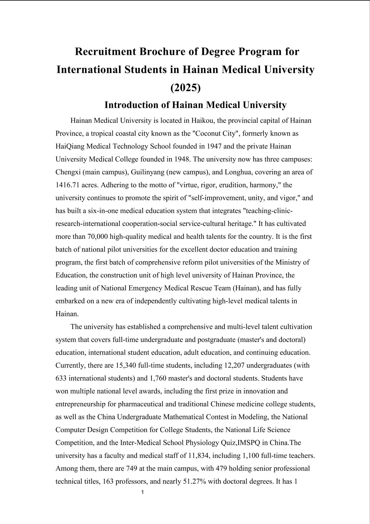 Recruitment Brochure of Degree Program for International Students in Hainan Medical University (2025)