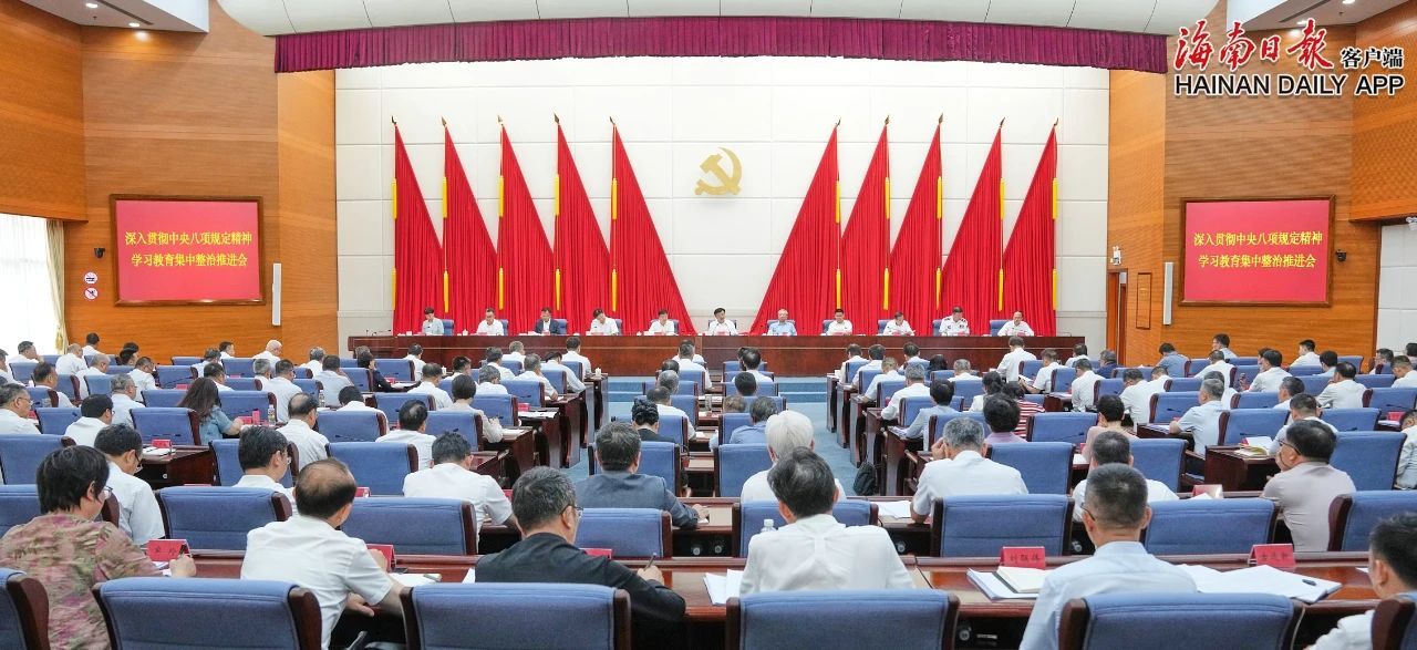 6月12日,省委召开深入贯彻中央八项规定精神学习教育集中整治推进会,贯彻落实党中央最新部署要求,听取学习教育集中整治工作落实情况,以更大决心和力度推进集中整治工作。中央第三指导组组长刘家义、中央第八巡视组有关同志到会指导,省委书记冯飞主持会议并讲话,省委副书记、省长刘小明,省委副书记、政法委书记杨晋柏等省领导出席。 会议强调,全省各级党组织要深入学习贯彻习近平总书记重要讲话和指示批示精神,按照党中央最新部署要求,进一步增强责任感、紧迫感,把抓好集中整治摆在突出位置,拿出攻坚拔寨的狠劲、连续作战的韧劲,以“严实效”标准抓好集中整治,为海南自由贸易港建设提供坚强作风保障。