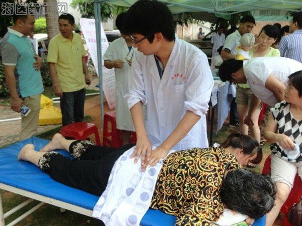 4月26日,在第26个“全国爱国卫生运动月”到来之际, 由共青团海南医学院委员会、海南医学院附属医院共同主办、校学生会承办的海南医学院第八届大学联合义诊活动在海口市金盘创业新村社区顺利举行。本次义诊活动的主题是“弘扬医学知识 传递爱心健康”,校学工部王长福老师、海南省边防总队医院医护人员、校学生会医学实践部、校针灸推拿协会等四十余名志愿者参加了此次活动,接诊200余人。