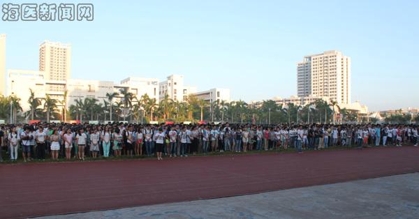 2014年9月29日上午7:00,值中华人民共和国65岁生日来临之际,我校城西校区全体学生集中在田径场举行隆重的升国旗仪式,五星红旗在朝阳下冉冉升起、迎风飘扬,全体师生奏唱国歌、响彻校园。升国旗仪式后,校团委符琬聆书记向全体青年宣读《海南医学院培育和践行社会主义核心价值观倡议书》。学生工作部副部长余伟新,二级院系党总支书记、副书记、团委书记、辅导员们也参加了本次活动。