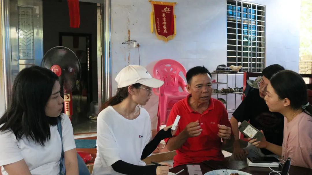 我们到达了七叉镇大章村黎医吉海连医生的家里后,吉医生一家十分热情地接待了我们,并带我们上山采药,教我们识别各种各样的黎药,介绍了它们的功效和用途。一路上队员们认真听讲、细心观察一草一木、并采摘具有代表性的黎药以制作标本。