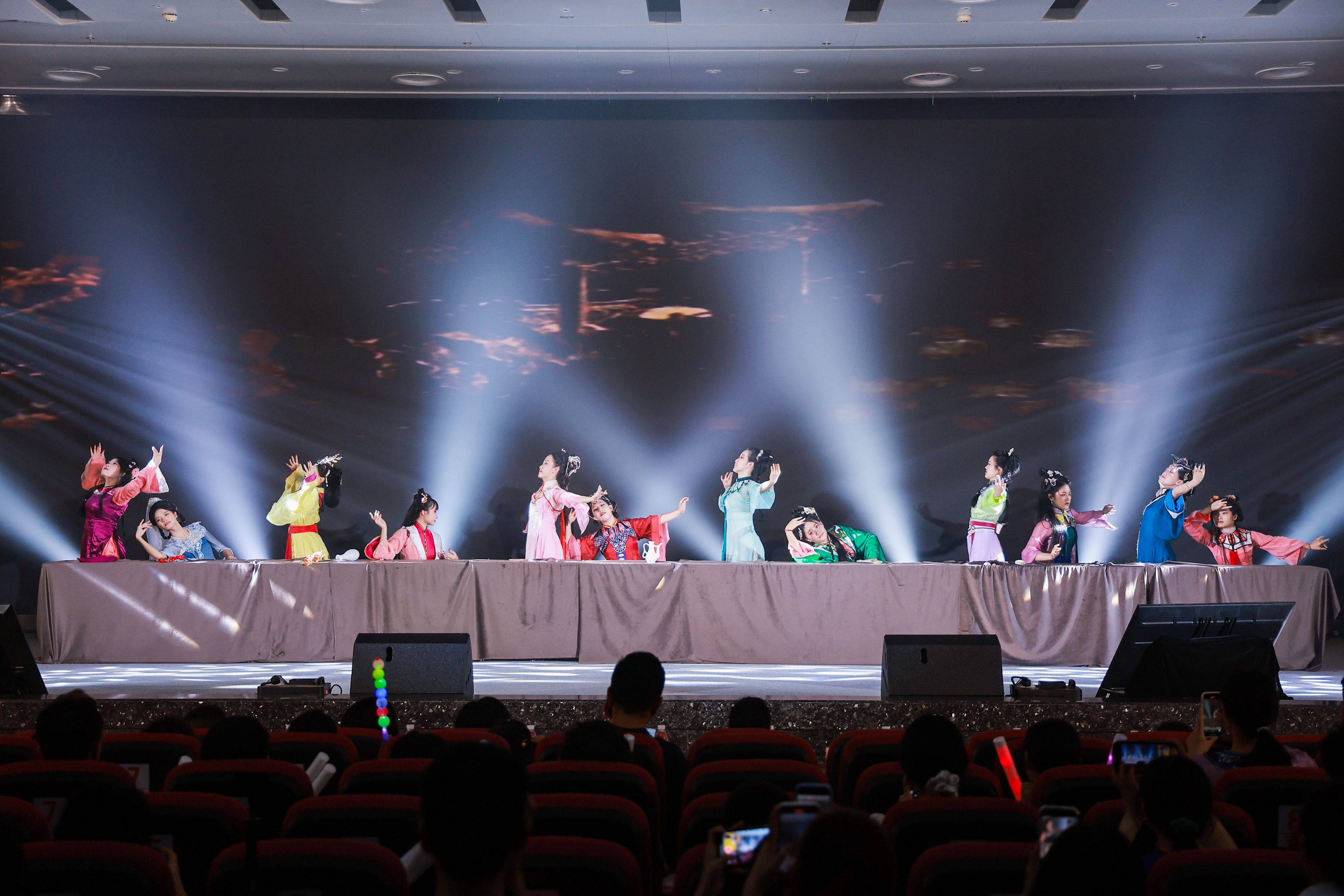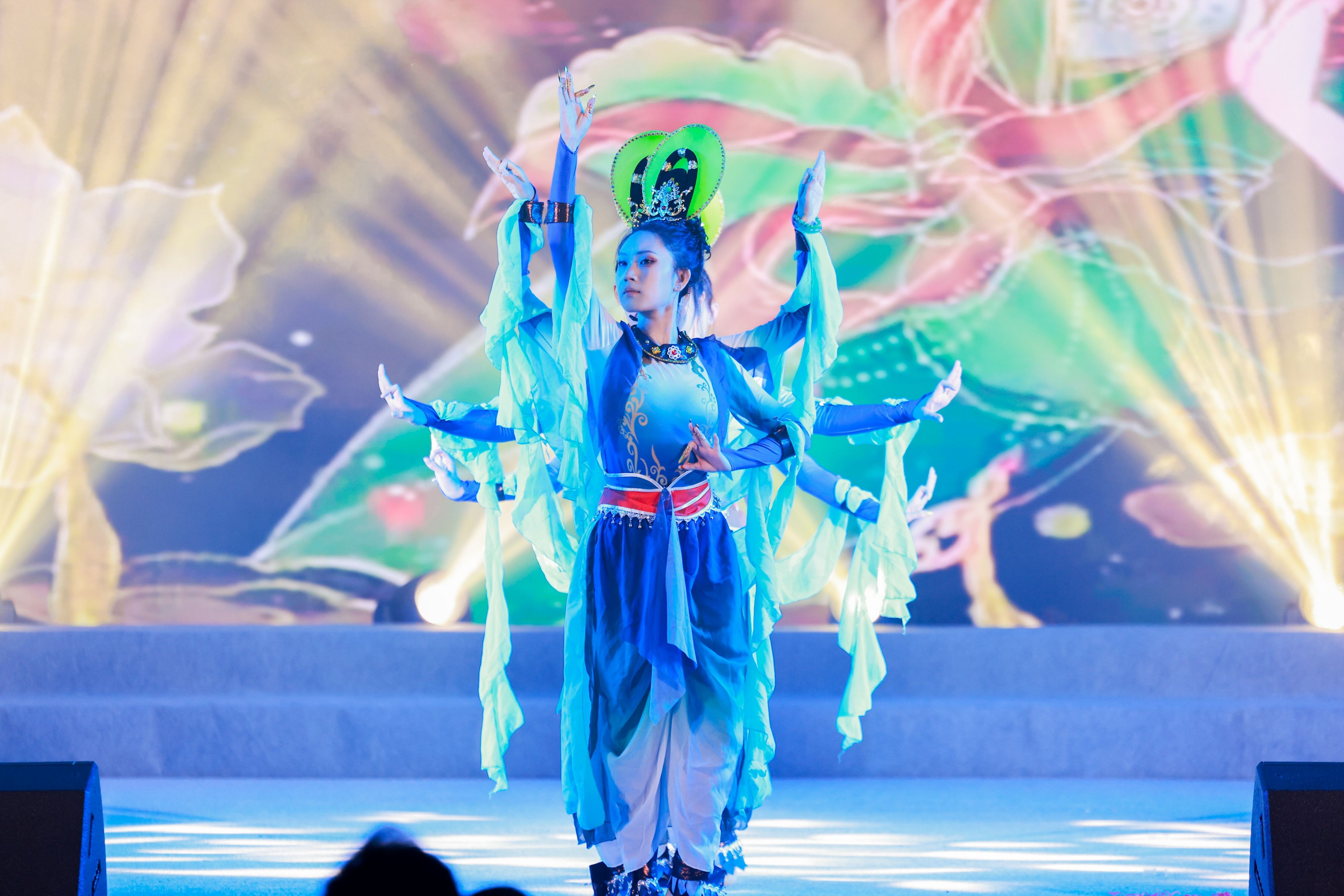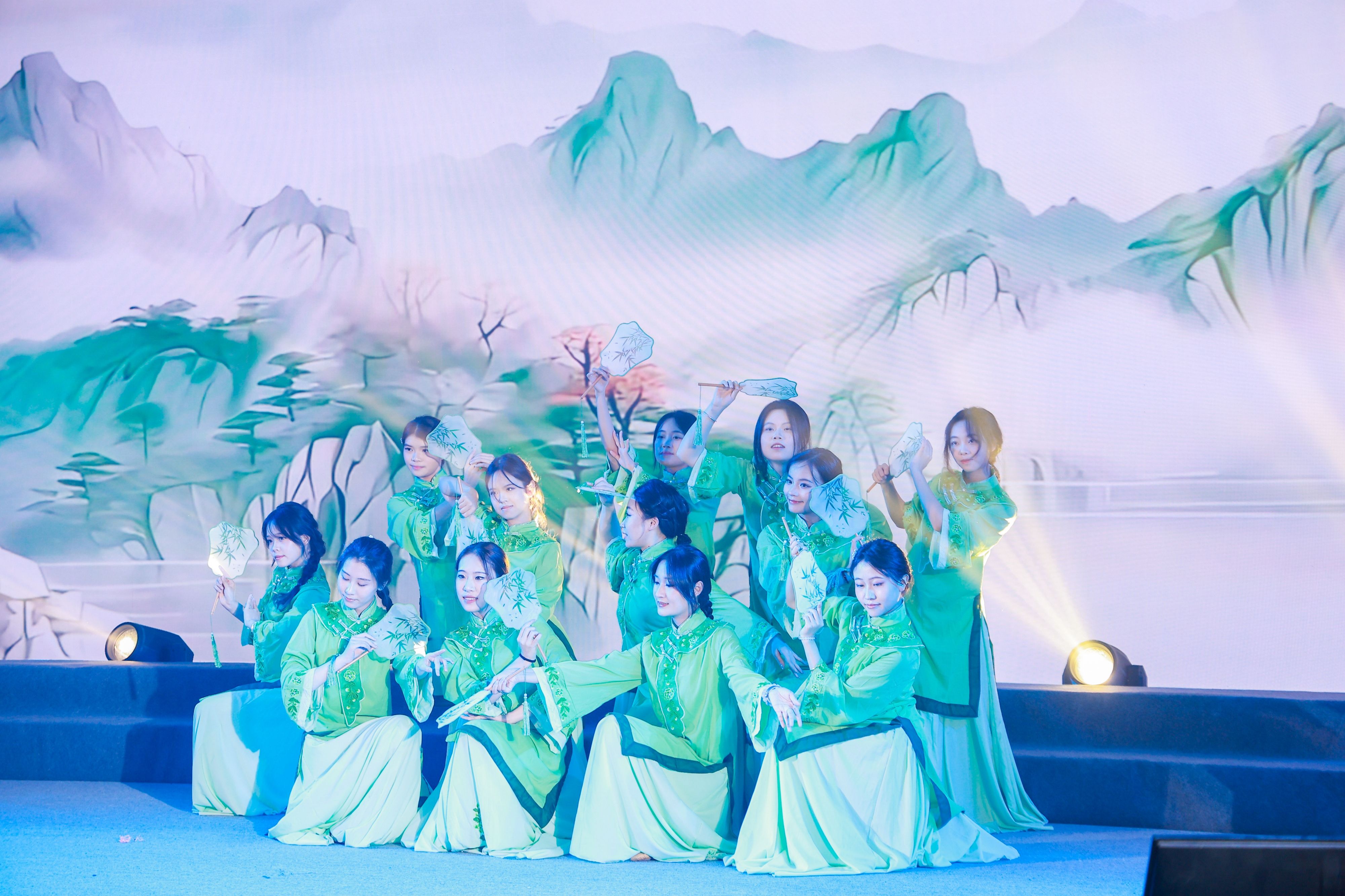 汉服社的同学们身着云纹广袖襦裙轻旋入场,《红楼梦·游园》的古典雅韵便在厅内流淌开来。她们执团扇、拂水袖,以“转轴拨弦三两声“的婉约,将大观园里的桃柳烟霞、诗酒茶韵化作流动的文化长卷,展现着中华传统美学的隽永魅力。大学生艺术团接续呈现的《迦陵频伽》《清风徐来》,用舞蹈语汇诠释着生命与自然的共生之美;而《戏文说》中半开折扇的翻转、水袖的抛接,则将戏曲“唱念做打”的程式美学,转化为青春学子对传统文化的当代演绎。