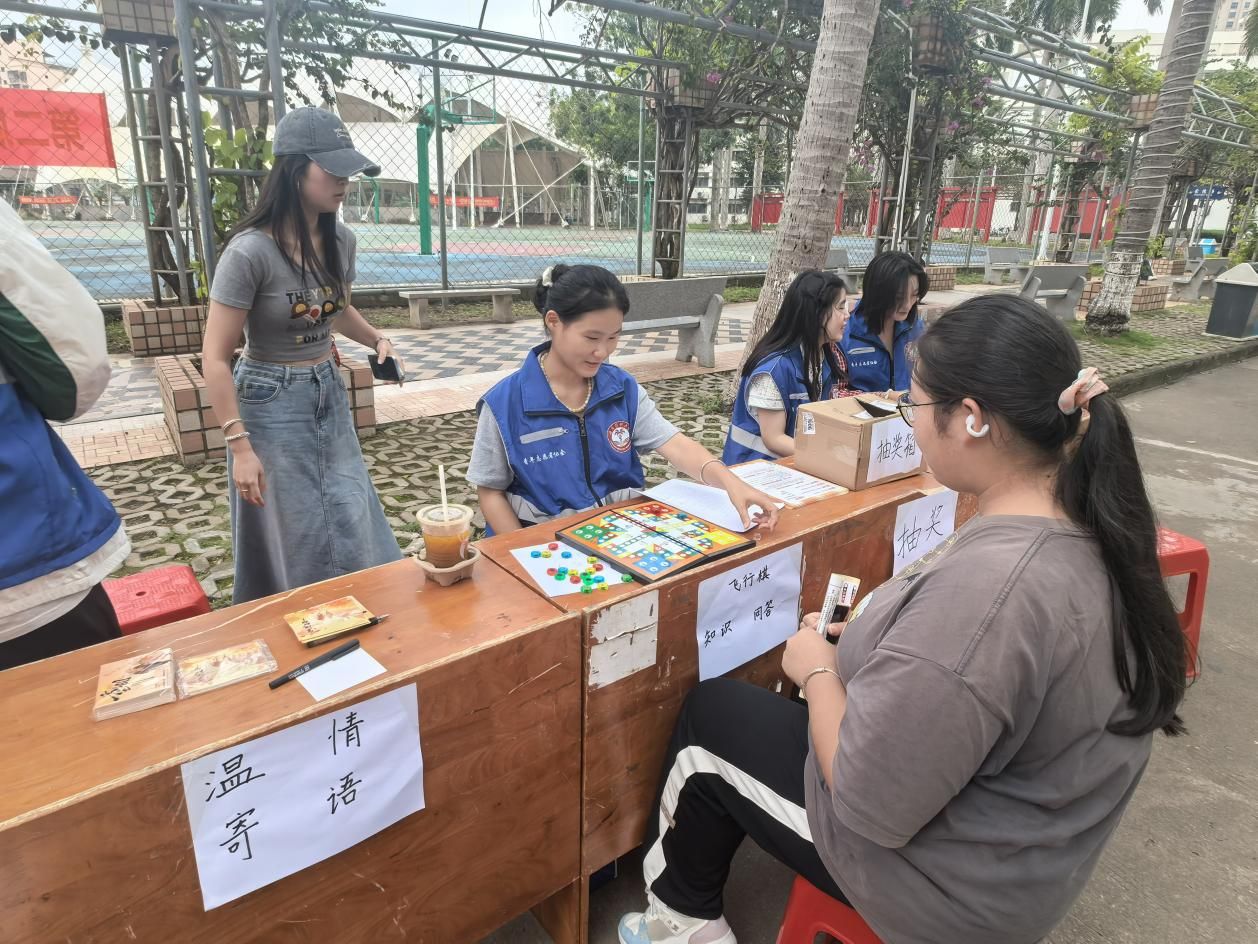 活动当日早晨八点整,所有现场布置工作已全部完成,整个场地洋溢着浓厚的古典文化氛围,吸引了众多师生驻足参与。志愿者们提前精心策划,推出了多项富有创意的沉浸式文化体验项目,包括趣味盎然的盲盒捏捏乐手工制作、传统与现代结合的书签投壶挑战赛、精美可爱的钥匙扣粘土DIY活动,以及传达感恩之情的孝心贺卡书写环节。这一系列互动不仅让师生们亲身感受到传统文化的魅力,也在轻松愉快的氛围中实现了文化的深度浸润,引发了广泛的青春共鸣和情感互动。