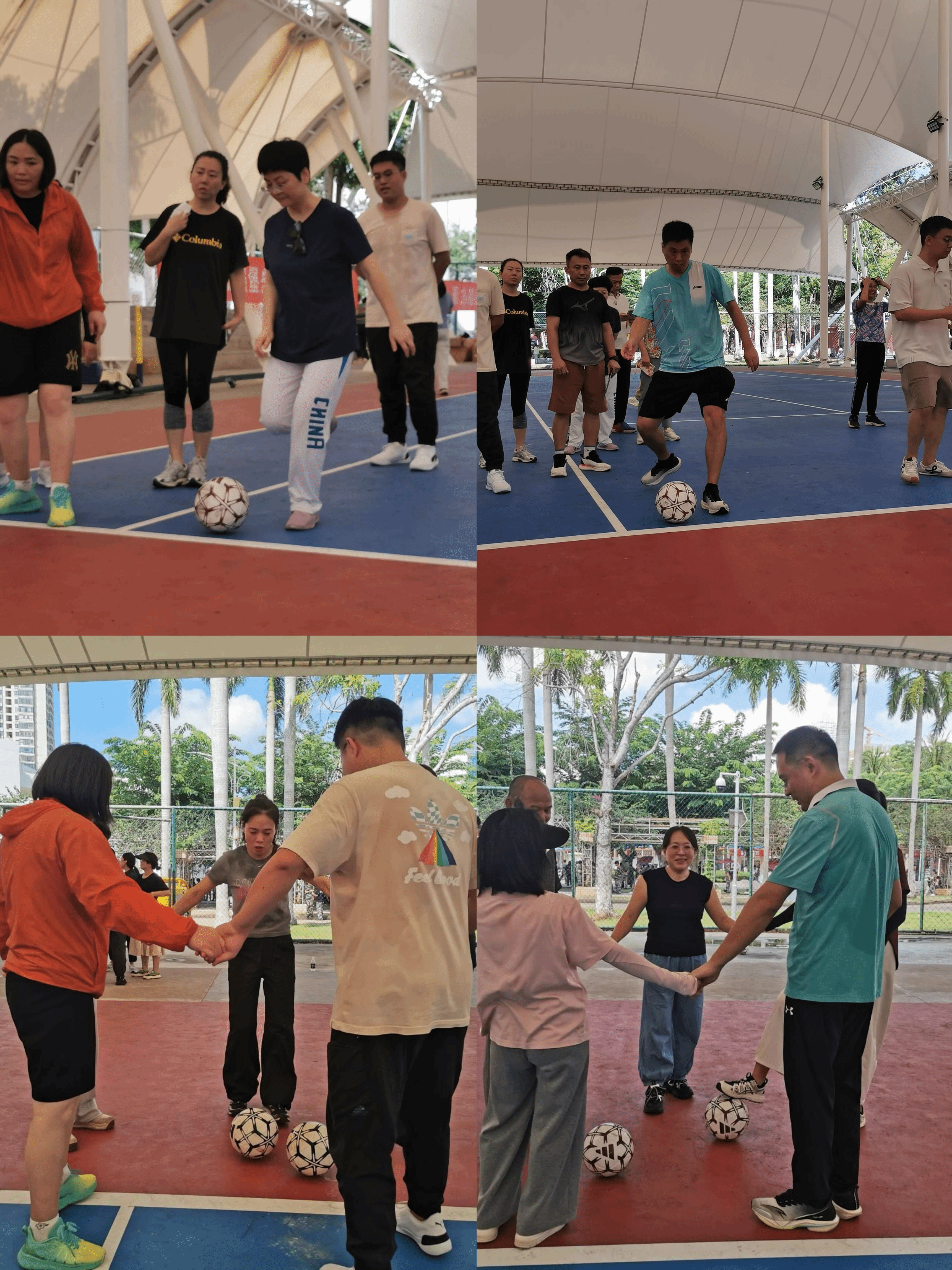 2025年9月15日上午,海南医科大学风雨操场人声鼎沸、欢声雷动,第四联合党委成立后的首次大型活动——“头雁领航强堡垒,协同奋进育新人”教职工拓展活动在此火热举行。第四联合党委书记常彩红、体育部主任陈基成、副主任袁丽、外语部副主任李丹云,以及继续教育学院、体育部、外语部近80名教职工齐聚一堂,以昂扬姿态共赴一场团结与速度的盛宴。体育部教职工民航充分发挥专业优势,为赛事成功举办提供专业的组织和裁判支持。本次活动旨在促进三个部门教职工之间的交流与协作,为后续工作开展奠定良好的基础。