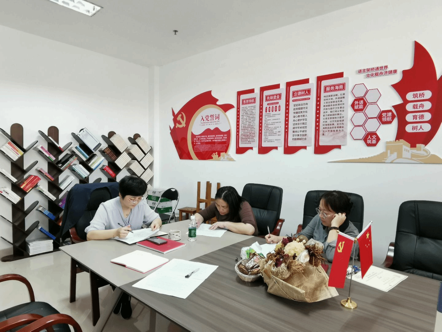 为深入贯彻落实第四联合党委常彩红书记关于建设样板支部的工作部署,按照12月19日韦杰同志指导提出的有关样板党支部申报工作的具体意见,精准梳理建设材料、细化改进举措,持续提升样板党支部创建质量,外语部教工党支部于2025年12月22日召开样板党支部建设推进专题支委会。第四联合党委委员、外语部教工党支部书记、外语部副主任李丹云主持会议,支部委员林娜、曾美婷参会,外语部行政办主任龙燕列席会议。