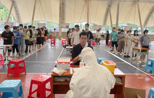 在核酸检测现场,各学院书记、辅导员以及学生工作处干部,全程参与,与海南医学院第一附属医院,第二附属医院以及附属海南医院三家医院医护人员通力配合,学工人员负责现场引导,医护人员认真采集咽拭子标本,广大学生自觉遵守纪律、有序入场检测后快速离场。在师生、医护人员的共同努力下,核酸检测工作于晚上7时结束。
