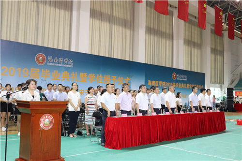 6月20日上午,我校2019届毕业典礼暨学位授予仪式在城西校区宋子文体育馆举行。校长杨俊,副校长孙晓宁、向伟,校长助理龚宁波,二附院院长王毅,附属海南医院副院长欧波,各职能部门负责人、各二级学院负责人等领导嘉宾及两千多名毕业生参加了毕业典礼。