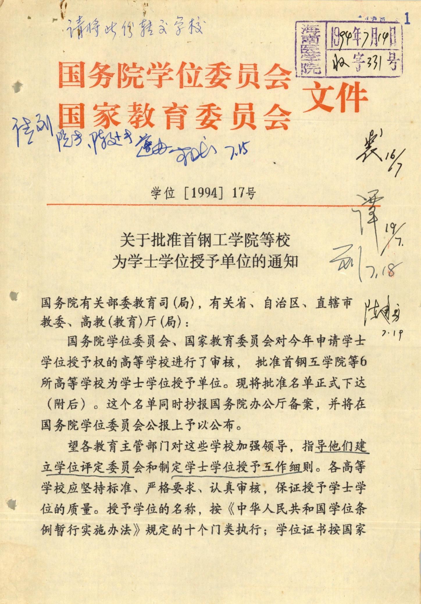 2019年1月,我校获国务院学位委员会批准成为博士学位授予权单位。