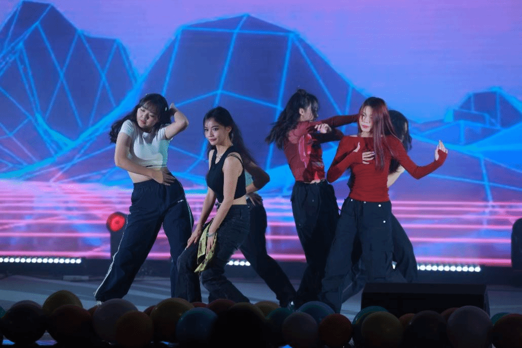 大学生艺术团用一支唯美的《古典舞—青山远黛》展现了古典艺术的优雅与深邃,以及一曲动感十足的《Diamond》点燃了全场氛围,现代与古典的碰撞,让人耳目一新。