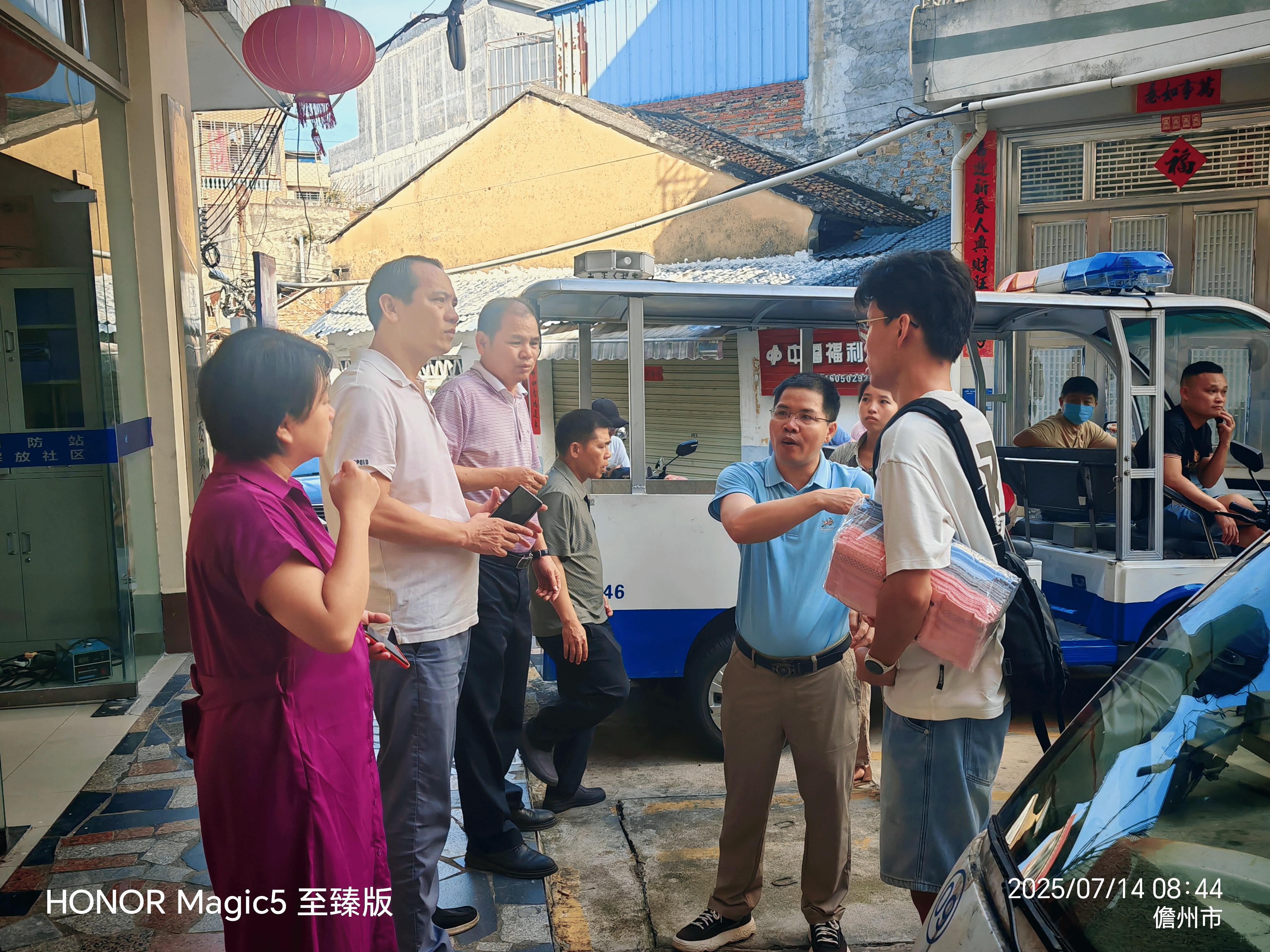 与网格员合影留念