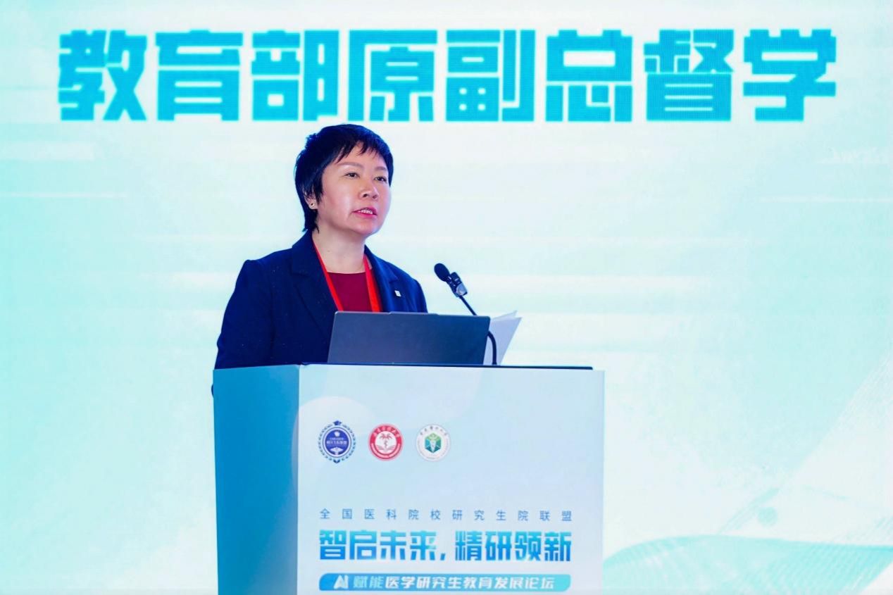 李渝凤表示,当前,新一轮科技革命和产业变革加速演进,人工智能正以“重塑一切”的力量深刻改变全球教育生态。本次论坛聚焦“AI赋能医学研究生教育发展”这一核心议题,既是对国家战略的主动呼应,更是对医学教育规律的深刻洞察,彰显了全国医科院校同仁们的前瞻视野与使命担当。海南省委、省政府始终将教育与医疗健康放在自贸港建设的首位,高度重视海南医科大学的发展,以自贸港优势推动医学教育创新。本次论坛择址海口,既是全国医科院校研究生院联盟对海南医学教育事业的高度信任与鼎力支持,更是推动我国医学研究生教育创新发展的重要实践。她希望各位专家同仁以论坛为纽带,围绕“AI与研究生培养质量保障体系构建”“医学+人工智能人才培养模式创新”“大模型时代实践教育改革”等关键议题,畅所欲言、深度研讨,既分享前沿探索的宝贵经验,也剖析改革实践中的难点堵点,共同探索人工智能赋能医学教育的路径方法。