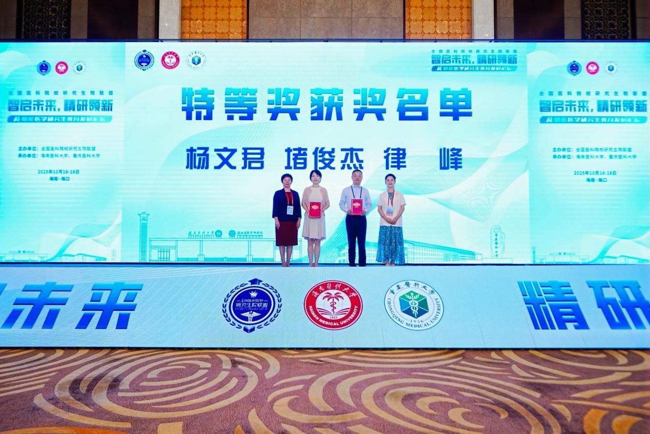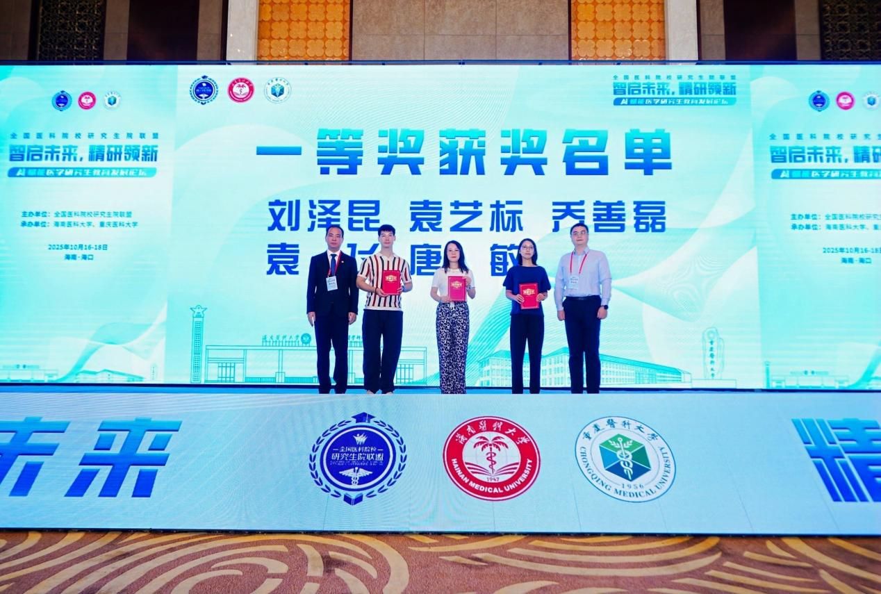 刘锦、李渝凤、黄斌文、河北医科大学副校长闫宝勇、河南医药大学副校长姬广军、全国医学专业学位研究生教育指导委员会秘书处办公室主任贾金忠为优秀论文获奖者颁发荣誉证书。