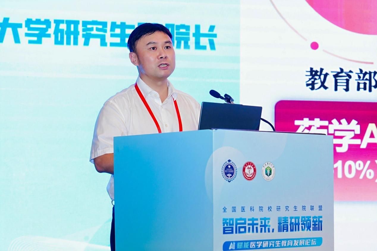 黄斌文代表海南医科大学全体师生,向远道而来的各位嘉宾表示热烈的欢迎。他介绍了海南医科大学作为海南自贸港内唯一所公办医学院校,始终以“培养高素质医药人才、服务国家战略需求”为己任,在校长陈国强院士的带领下进行了管理机构、导师淘汰机制、学科建设、校风学风等方面的“破天荒”式的改革探索。面对人工智能技术革命浪潮的背景下,海南医科大学以“数字赋能教育”为抓手,率先在医学研究生教育中布局AI应用,取得一系列阶段性成果。他表示,AI技术的突破为医学教育带来历史性机遇,更需要联盟单位以“共同体”思维深化协作,要共建资源共享机制、共研人才培养标准、共推科研协同创新,以“天下不敢小海医”的魄力,共同书写医学研究生教育高质量发展的新篇章。