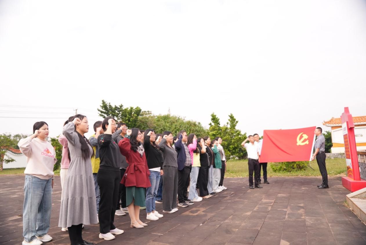 在纪念园内,在学院党委副书记张小坡同志的领誓下,全体党员面对鲜红党旗,庄严举起右拳,重温入党誓词。“我志愿加入中国共产党……”铿锵有力的誓言在纪念园上空回荡,表达了同志们坚守初心、担当使命的坚定信念。随后,大家通过瞻仰旧址、缅怀先烈,深刻感悟了琼崖纵队“二十三年红旗不倒”所蕴含的坚定信念、不屈斗志和忠诚本色,从中汲取了砥砺前行的精神力量。