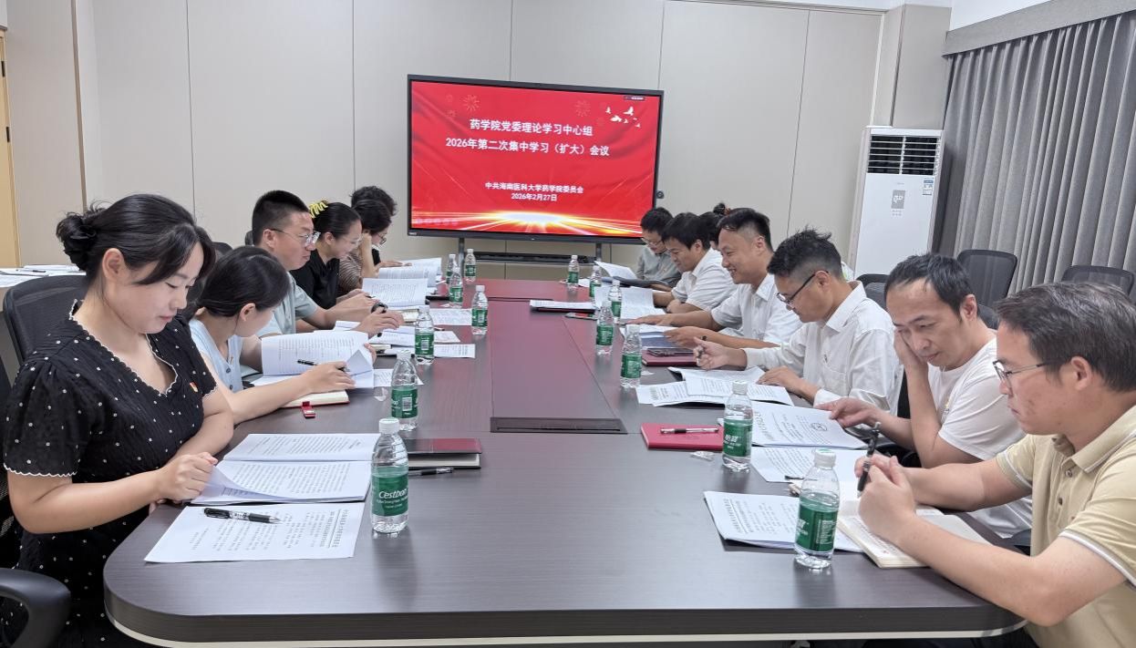 2月27日上午10点,药学院党委在润深楼南楼205会议室召开理论学习中心组2026年第二次集体学习(扩大)会议。学院党委书记王朝昕主持会议,理论学习中心组成员及各党支部书记参加。