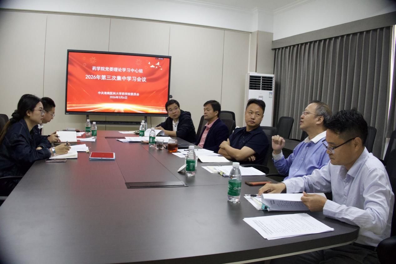 3月6日上午10点,药学院党委在润深楼南楼205会议室召开理论学习中心组2026年第三次集体学习会议。学院党委书记王朝昕主持会议,理论学习中心组成员参加。