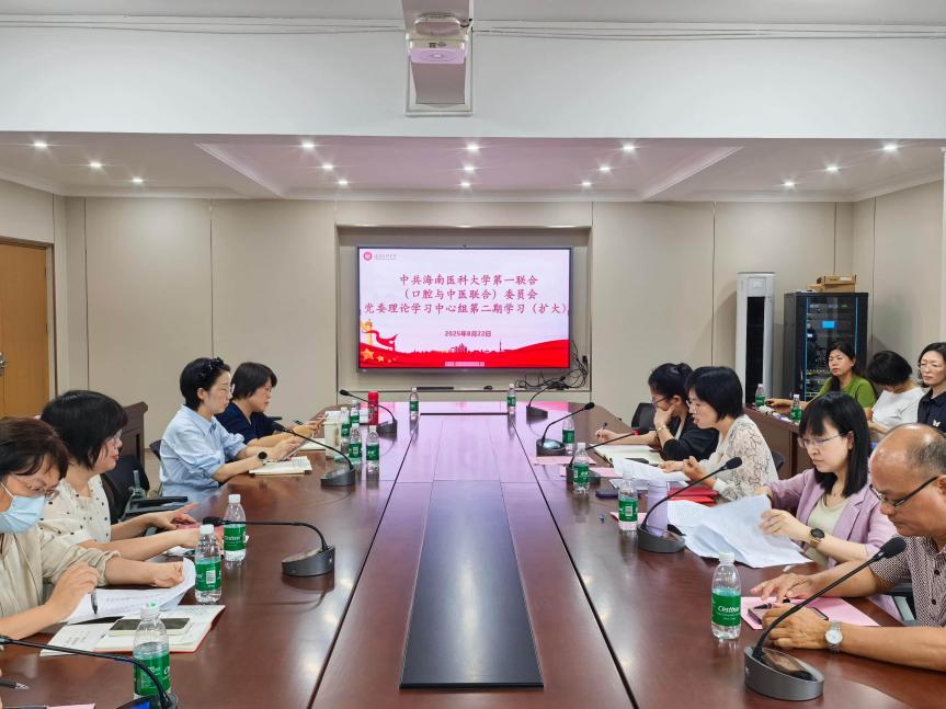 2025年8月22日上午,中共海南医科大学第一联合(口腔与中医联合)委员会党委理论学习中心组第二期学习(扩大)会议在行政楼第二会议室顺利召开。本次学习会以“舌脉齿间传仁术,融合赋能启新程”为主题,结合当前党建工作实际,组织开展专题学习和集中研讨。口腔与中医党政领导班子成员、各党支部书记及全体党员参加会议。会议由联合委员会书记郭向同志主持。