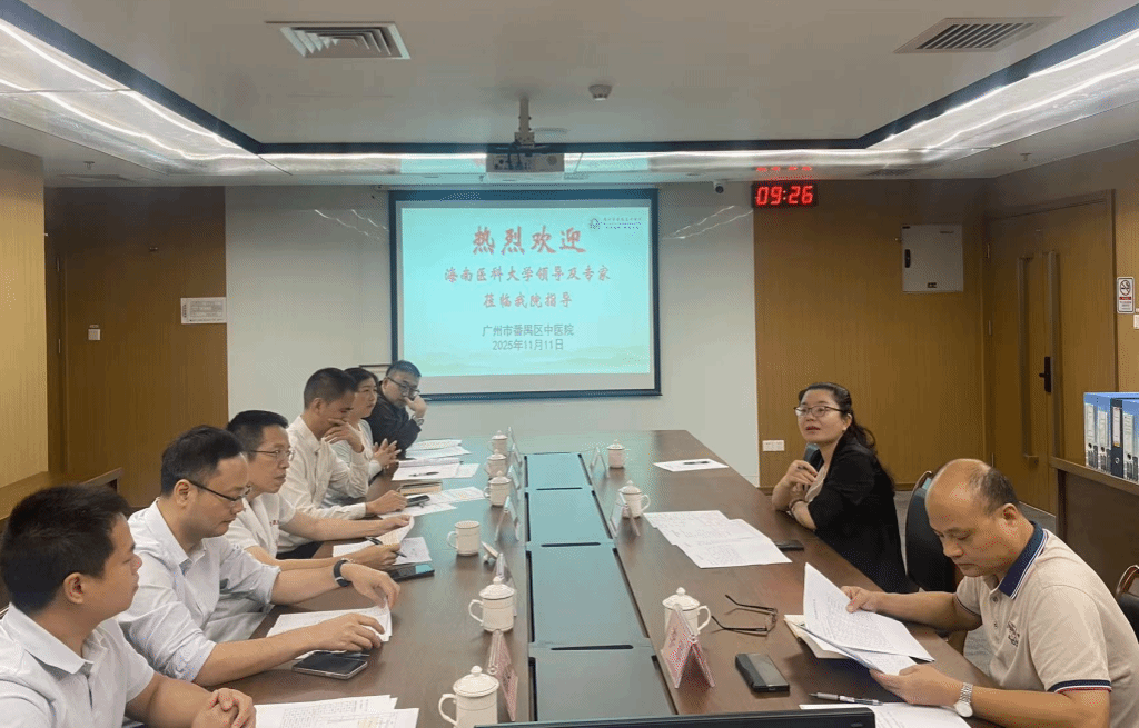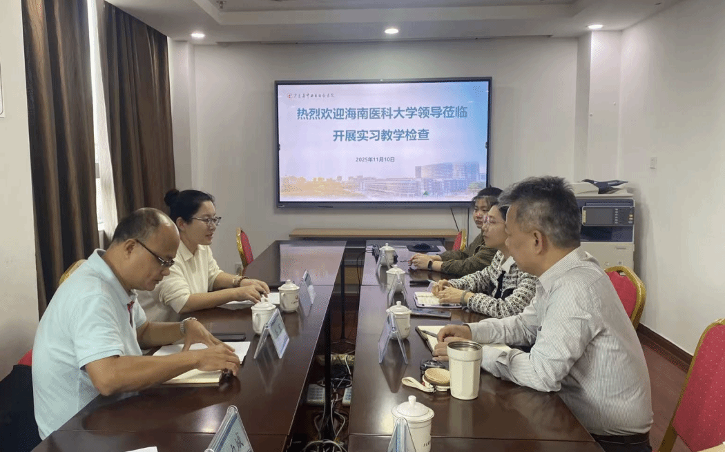 根据《海南医科大学教务处关于做好 2025 年度实习教学检查工作的通知》(海医教通〔2025〕76 号)要求,11月10日、11月11日,中医学院实习检查组分别到广东省中西医结合医院、广州市番禺区中医院,组织开展实习教学检查活动。检查过程中,检查组重点围绕教学管理规范、师资队伍建设、临床教学实施、学生实习成效等核心内容,通过听取汇报、查阅资料、实地考察、师生座谈、临床技能考核等方式,全面了解教学医院在实习教学管理规范、教学质量保障体系建设,以及人才培养质量提升等方面所做的工作和取得的成效。